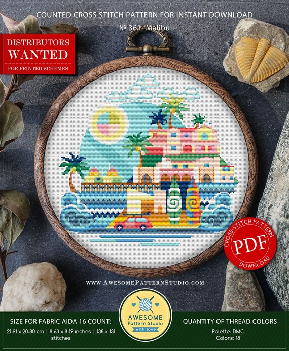 Malibu P361 Embroidery Cross Stitch Pdf Pattern Download Etsy