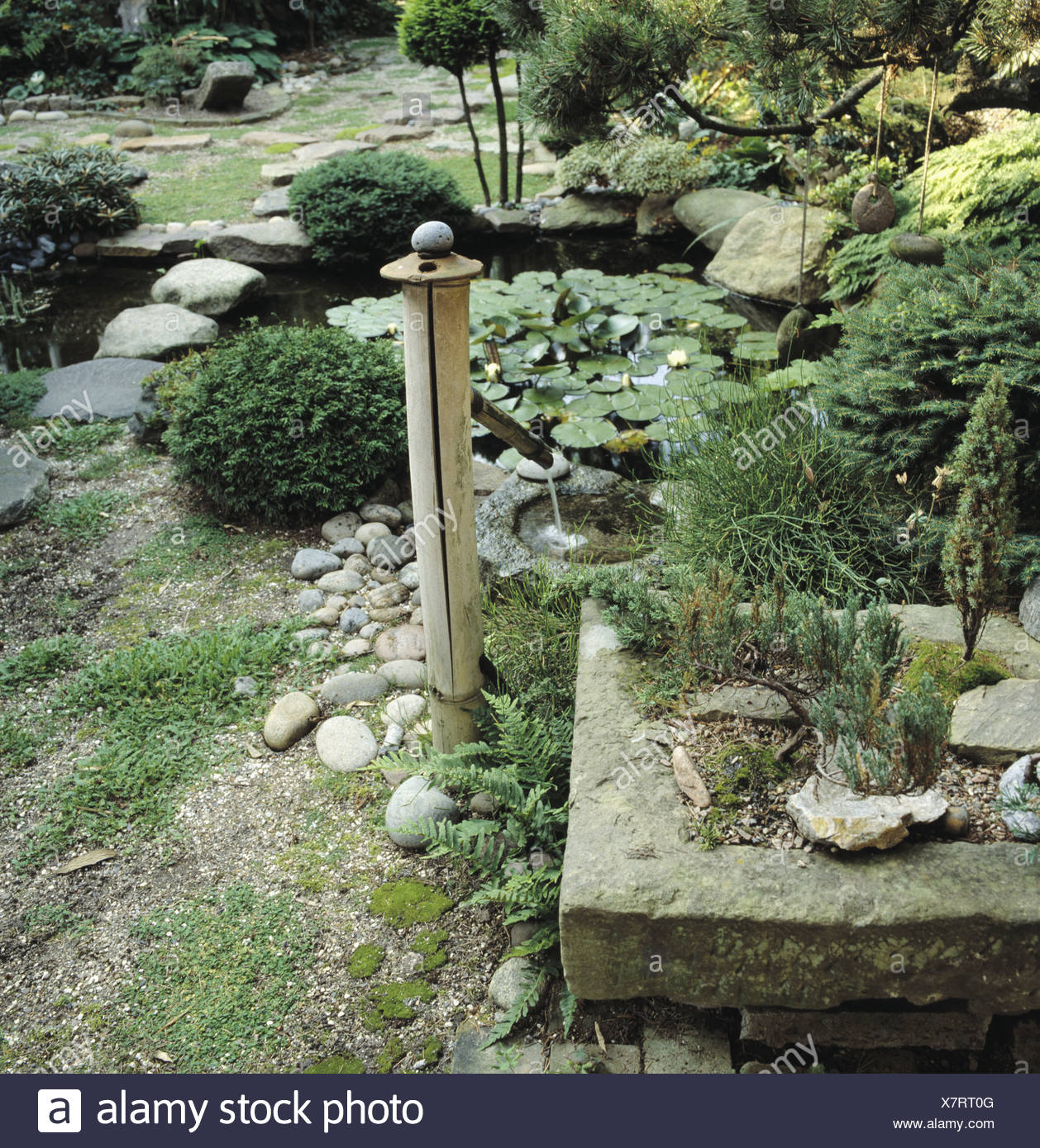Bonsai Arbres Dans L Auge De Pierre A Cote De La Fontaine De