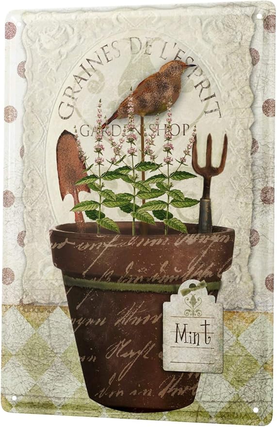 Amazon Com Tin Sign Xxl Flora Flores Pot Jardin De Menta Pala