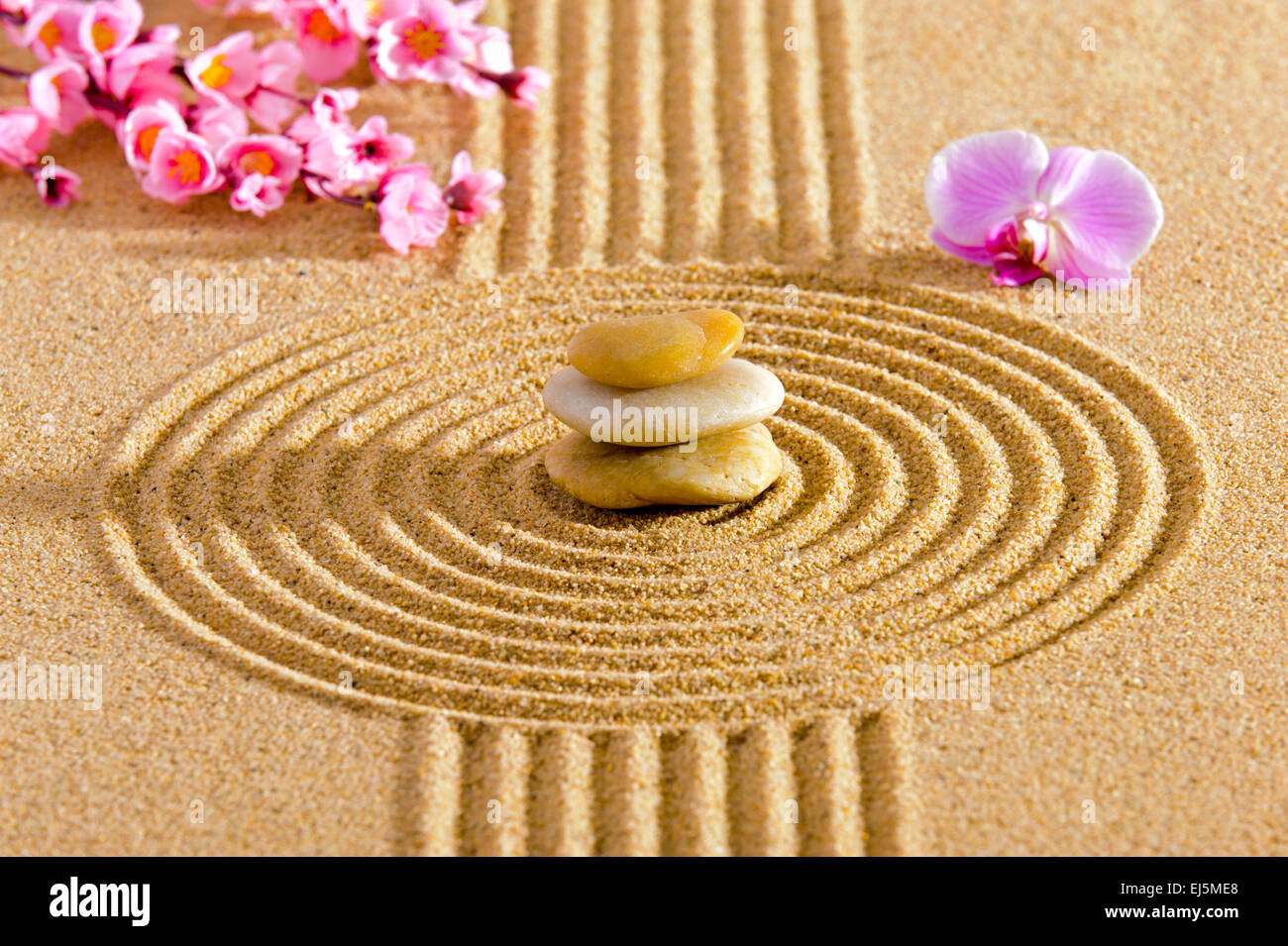 Jardin Zen Japonais Avec Des Pierres Empilees Dans Le Sable Banque