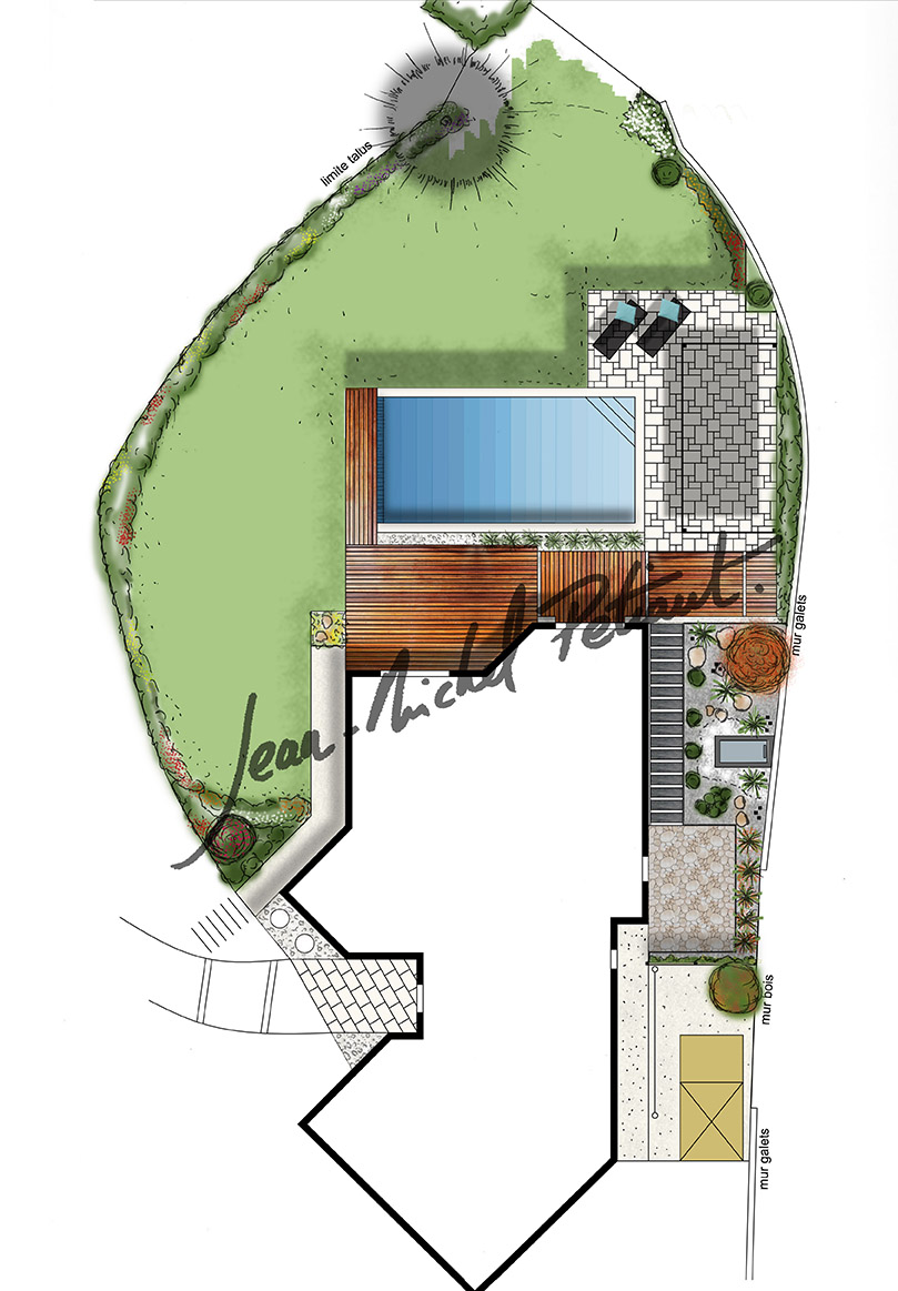 Plan D Une Piscine Dans Un Jardin Amenage Jm Petiaut Paysagiste